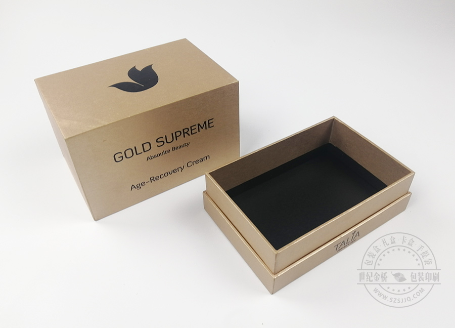 此款金卡纸美容礼盒,采用特种金卡压纹纸,纹理清晰,质感突出,视觉效果冲击力强,能体现产品的品质感和尊贵的感觉。材质硬挺厚实,作为装美容产品的礼盒,能获得顾客的信任感,获得良好的客户体现和信任。