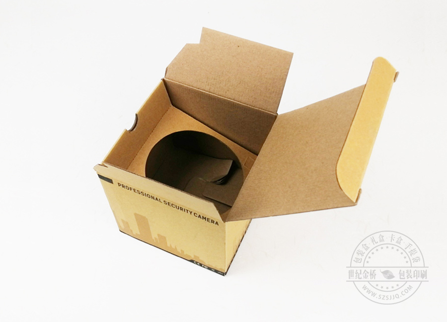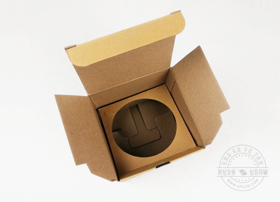 家电数码瓦楞纸盒这款盒子是牛皮质做成的,裱在坑纸上,也是双叉盒型,作为大件一点的产品,是个很好的选择。一体成型,可以平铺运输,组装也很简单,体积感也很好,内托直接与盒型一体。